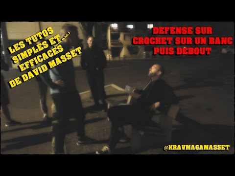 Travail de quelques techniques de menaces couteau, pistolet ou attaques en crochets en situation de nuit par David Masset et ses élèves. Défense assis sur un banc, debout, contre une voiture. Méthode de krav maga ou encore penchak silat.
